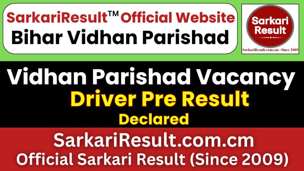 बिहार विधान परिषद ड्राइवर प्री रिजल्ट 2026