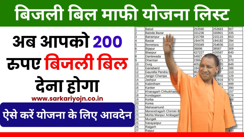 यूपी बिजली बिल माफ़ी योजना सूची पीडीएफ