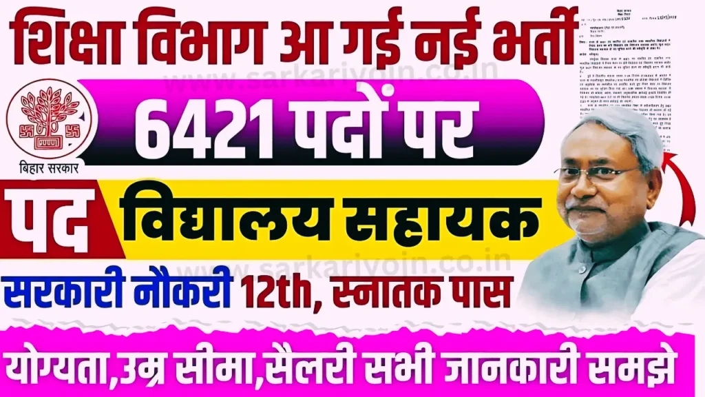 बिहार सरकार के शिक्षा विभाग ने प्रत्येक सरकारी स्कूल में एक सहायक की नियुक्ति के लिए भर्ती प्रक्रिया शुरू कर दी है। इस बड़े पैमाने पर भर्ती में कुल 6,421 रिक्तियां शामिल हैं। आधिकारिक अधिसूचना पुष्टि करती है कि भर्ती प्रक्रिया जल्द ही शुरू होगी, और आवेदन ऑनलाइन स्वीकार किए जाएंगे।