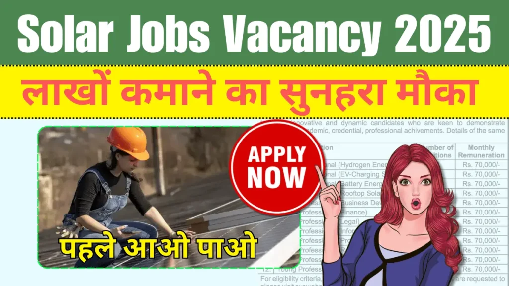 सौर ऊर्जा नौकरियां रिक्ति:प्रधानमंत्री नरेंद्र मोदी (पीएम नरेंद्र मोदी) ने हाल ही में कहा सूर्य घर मुफ्त बिजली योजना (पीएम सूर्य घर मुफ्त बिजली योजना) की शुरुआत है. इस योजना के तहत 1 करोड़ घरों में रूफटॉप सोलर पैनल (रूफटॉप सोलर पैनल) लगाने का लक्ष्य है। इस योजना से न केवल आम जनता को मुफ्त बिजली का लाभ मिलेगा, बल्कि सौर ऊर्जा सेक्टर में सौर ऊर्जा नौकरियां रिक्ति की भ्रमर भी होने वाली है।