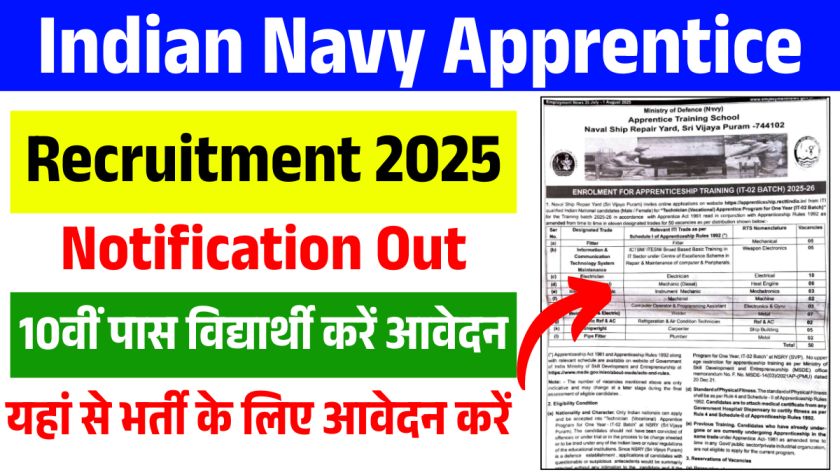 भारतीय नौसेना अपरेंटिस भर्ती 2025 नवीनतम अद्यतन